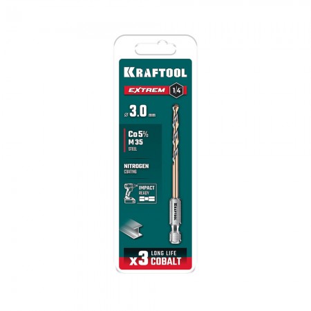 Сверло по металлу для винтовёртов и шуруповертов IMPACT READY НЕХ-1/4", d 3.0 х 72 мм KRAFTOOL 29652-3