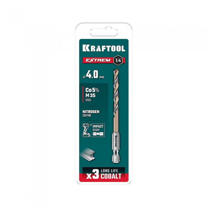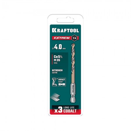 Сверло по металлу для винтовёртов и шуруповертов IMPACT READY НЕХ-1/4", d 4.0 х 83 мм KRAFTOOL 29652-4
