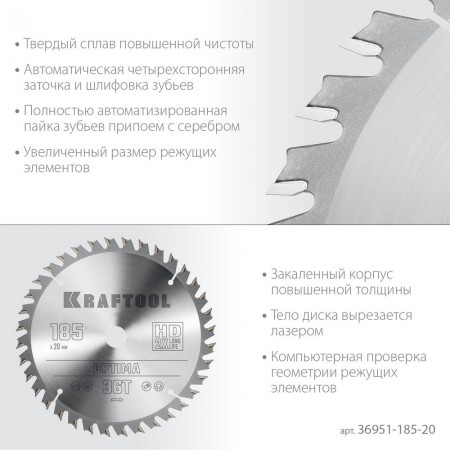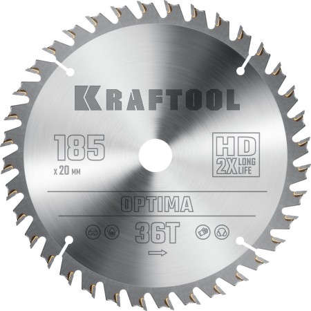 Пильный диск по дереву Optima, 185 х 20 мм, 36Т KRAFTOOL 36951-185-20
