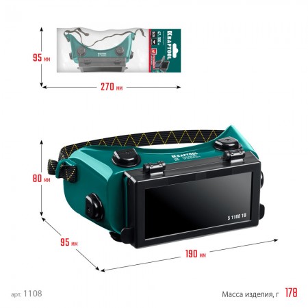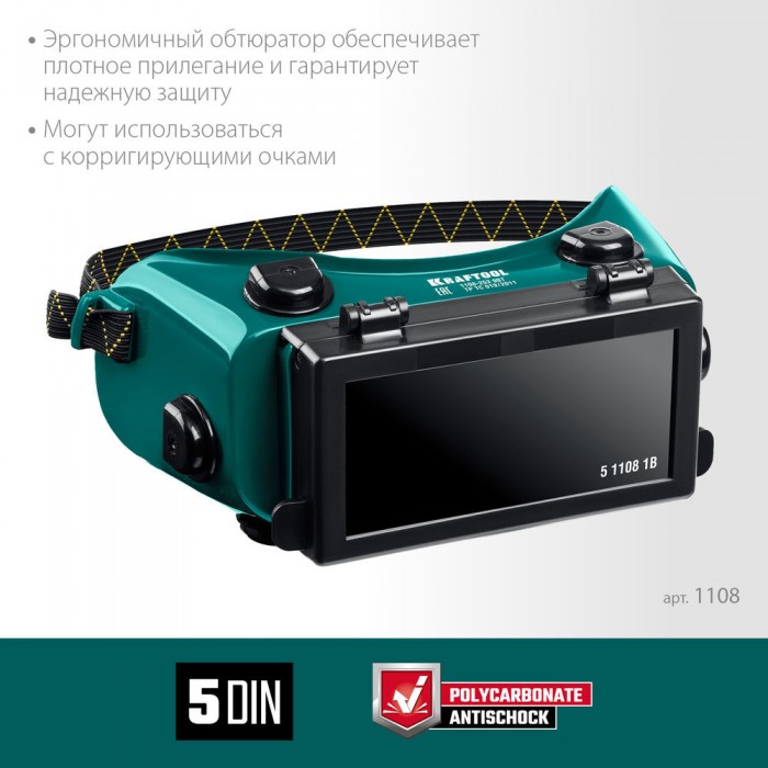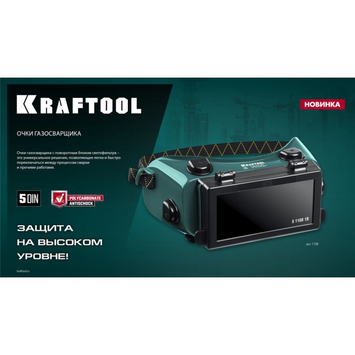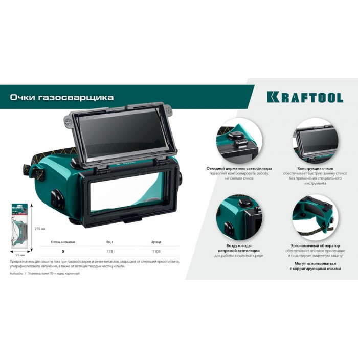 Очки газосварщика с откидным блоком, панорамные KRAFTOOL 1108
