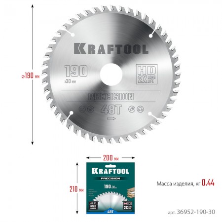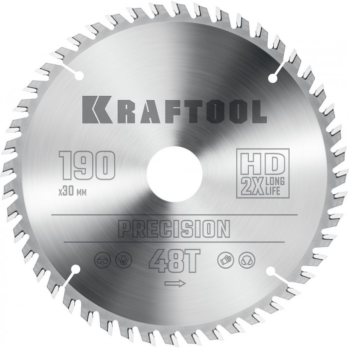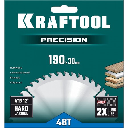 Пильный диск по дереву Precision, 190 х 30 мм, 48Т KRAFTOOL 36952-190-30
