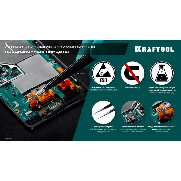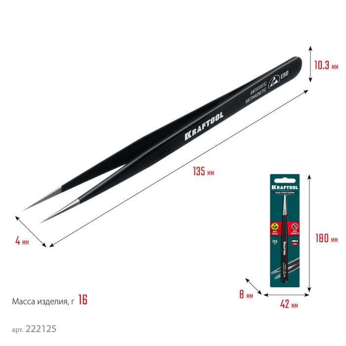 Антистатический антимагнитный прецизионный пинцет прямой, 135 мм KRAFTOOL 222125