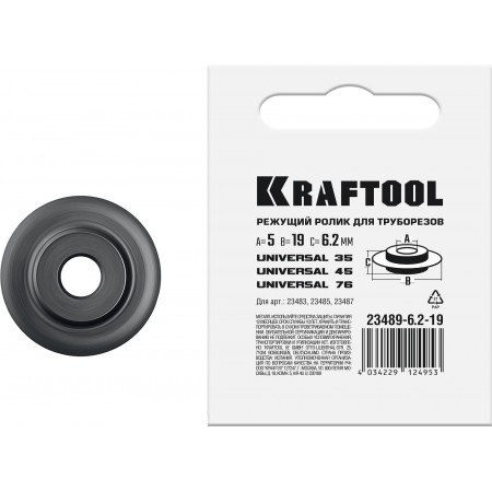 KRAFTOOL режущий ролик для труборезов Universal-30, 38, 76 (арт. 23382, 23383, 2387) (23489-6.2-19)