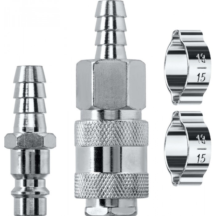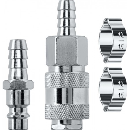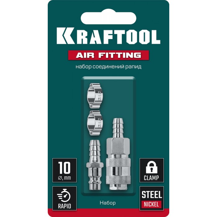 Набор (штуцер «елочка», 10 мм — рапид муфта) + (рапид штуцер-штуцер «елочка», 10 мм) + (обжимные хомуты 2 шт) KRAFTOOL 06599-10-H