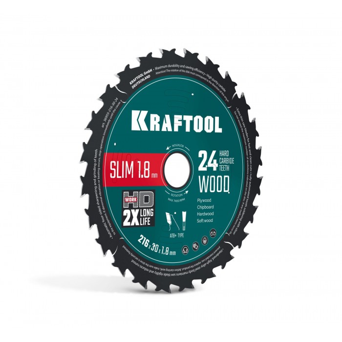 Диск пильный по дереву Slim wood cut, 216 х 30 x 1.8 мм, 24Т KRAFTOOL 36955-216-30-24