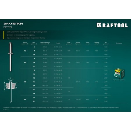 Стальные заклепки Steel, 4.0 x 10 мм, 1000 шт KRAFTOOL 311703-40-10