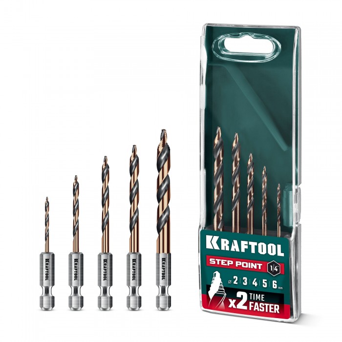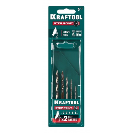 KRAFTOOL STEP POINT, 5 шт, набор сверл по металлу для винтовёртов и шуруповертов IMPACT READY (29653-H5)