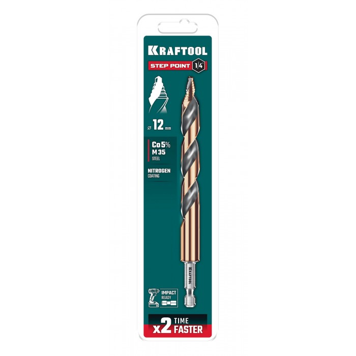 KRAFTOOL STEP POINT, d 12.0 х 151 мм, сверло по металлу для винтовёртов и шуруповертов IMPACT READY (29653-12)