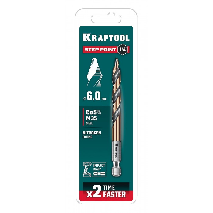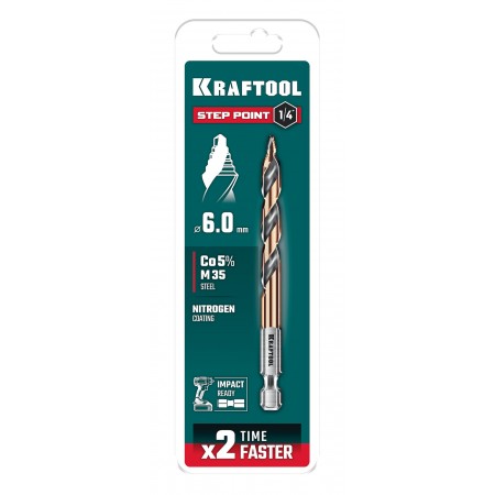 KRAFTOOL STEP POINT, d 6.0 х 98 мм, сверло по металлу для винтовёртов и шуруповертов IMPACT READY (29653-6)