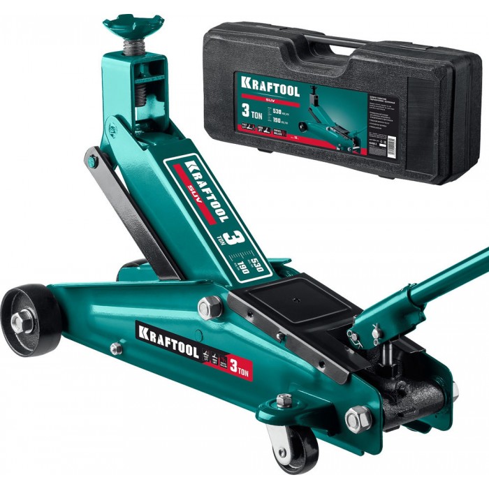 Домкрат подкатной 3 т, 190 - 530 мм с высоким подъемом в кейсе SUV KRAFTOOL 43458-3-K