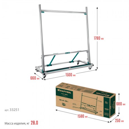 Тележка для перевозки крупноформатной плитки TCT-180, макс нагрузка 180 кг KRAFTOOL 33251