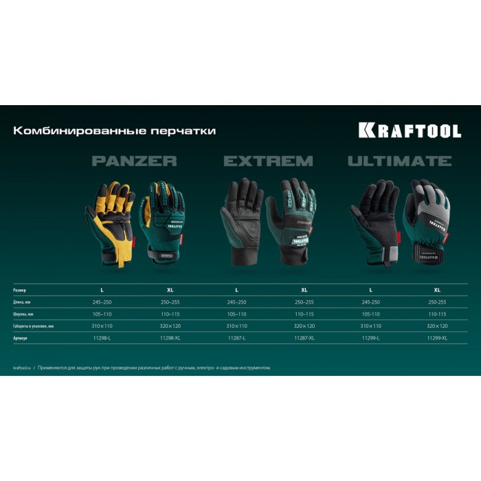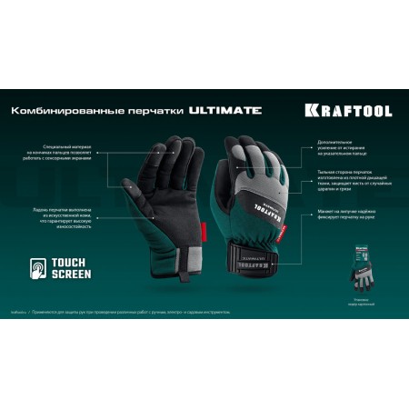 Профессиональные комбинированные перчатки ULTIMATE р.L (9), работа с сенсорными экранами KRAFTOOL 11299-L