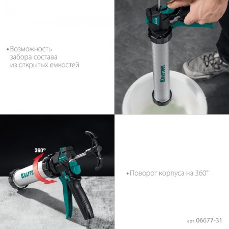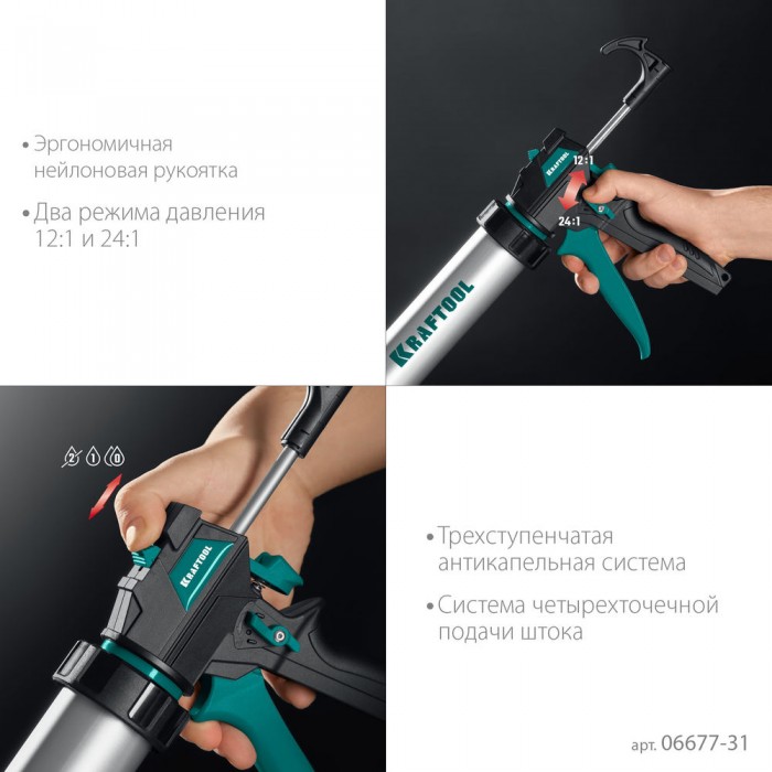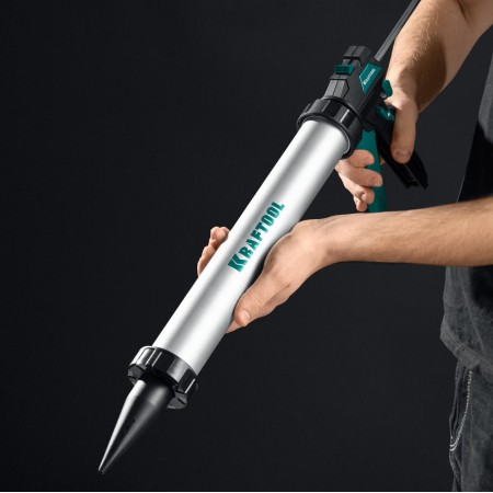 Пистолет для герметиков подходит для работы с картриджами объемом 310 мл, имеет скелетную конструкцию из стали, ручку из алюминиевого сплава, которые способствуют равномерной подачи клея либо герметика. Данная спецификация обеспечивает прочность и надежность конструкции пистолета при использовании.