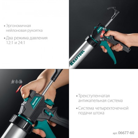 Пистолет для герметиков подходит для работы с картриджами объемом 600 мл, имеет полуоткрытый хромированный корпус, зубчатый шток из оцинкованной стали способствуют равномерной подачи клея либо герметика. Данная спецификация обеспечивает прочность и надежность конструкции пистолета при использовании. Оснащен иглой для удаления застывшего герметика/клея и встроенным резаком для сопла.