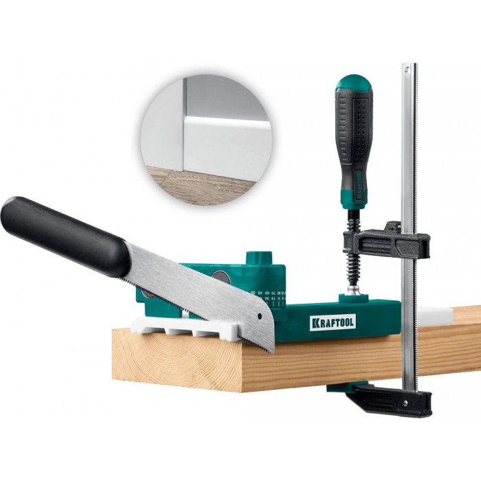 Для точного распила заготовок неограниченного размера из древисины и пластика под углом от 15° до 180° с шагом изменения угла 15° (15°, 30°, 45°, 60°, 75°, 90°, 105°, 120°, 135°, 150°, 165°, 180°)
