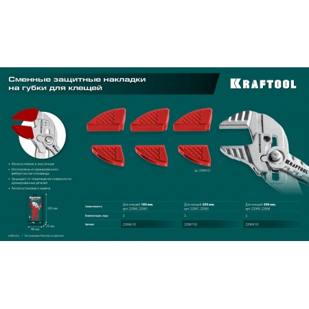 KRAFTOOL Vise-Wrench сменные защитные накладки на губки, для клещей 180 мм, набор из 3-х пар (22066-S3)