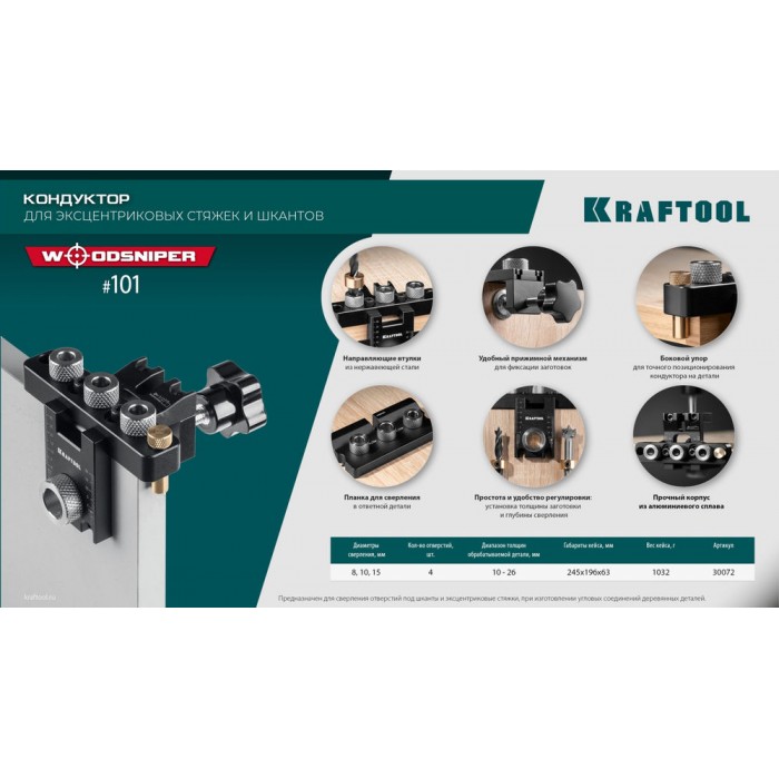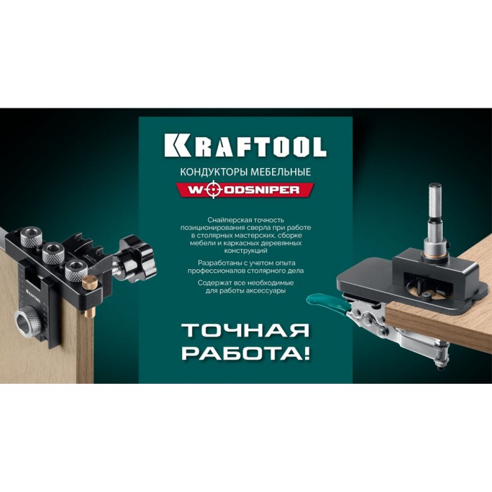 Кондукторы Woodsniper обеспечивают снайперскую точность позиционирования сверла при работе в столярных мастерских, сборке мебели и каркасных деревянных конструкций. Кондукторы содержат все необходимые аксессуары, что превращает работу в настоящее удовольствие. Кондукторы разработаны с учетом опыта и пожеланий профессионалов столярного дела, что гарантирует безупречное качество выполненных работ и неизбежное попадание в «яблочко».