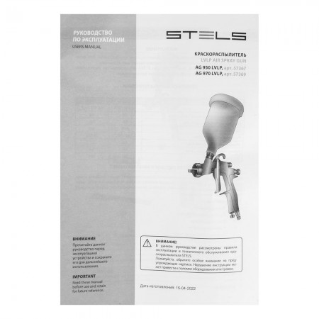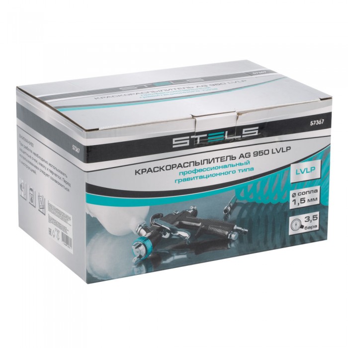 Краскораспылитель AG 950 LVLP, профессиональный, гравитационного типа, сопло 1.5 мм Stels (57367)