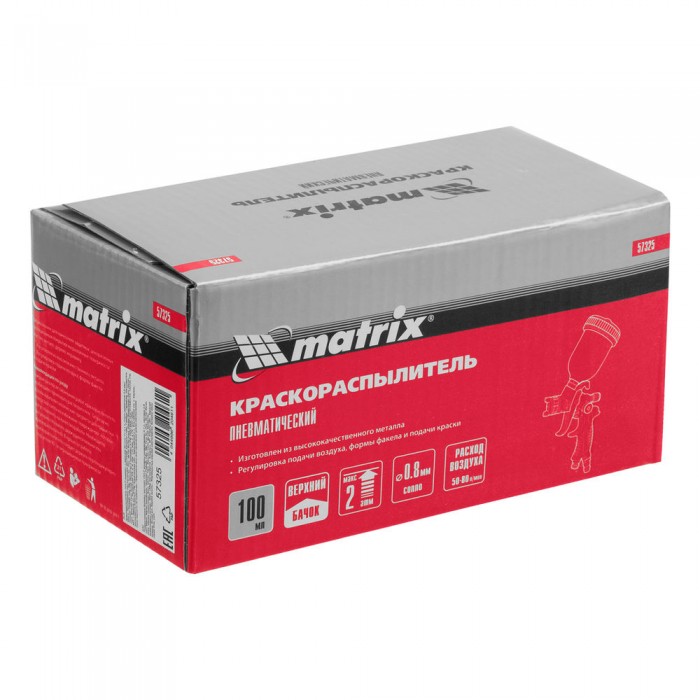 Краскораспылитель HVLP пневмат. с верхним бачком V= 0,1 л, сопло диаметром 0.8 мм Matrix (57325)