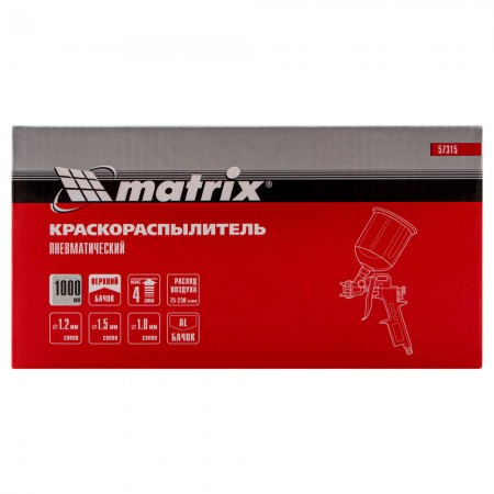 Краскораспылитель пневматический с верхним бачком V 1, 0 л, сопло D 1.2, 1.5 и 1.8 мм Matrix (57315)