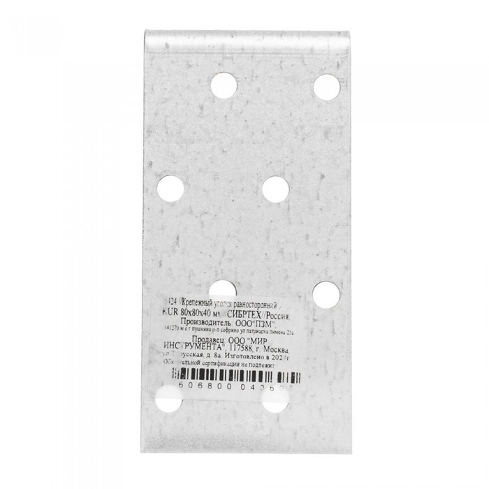 Крепежный уголок равносторонний 2 мм, KUR 80 х 80 х 40 мм Сибртех (46424)