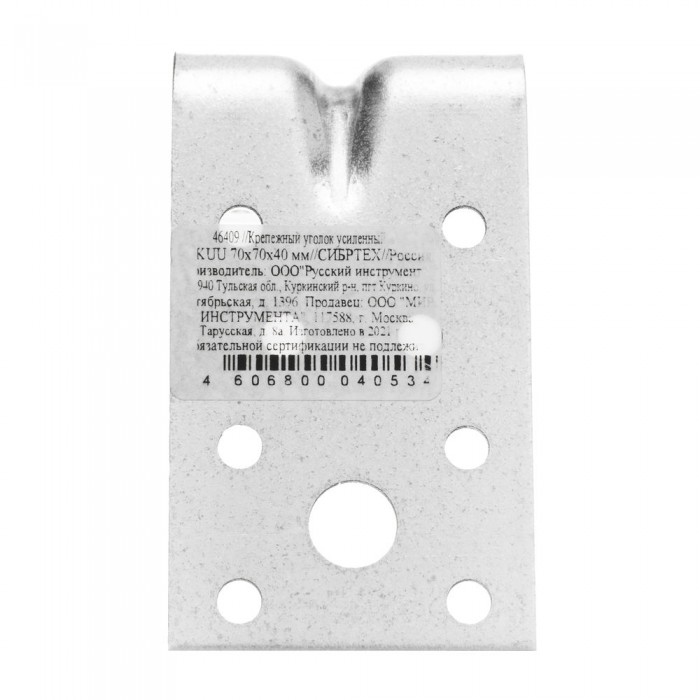 Крепежный уголок усиленный 1.7 мм, KUU 70 x 70 x 40 мм Сибртех (46409)