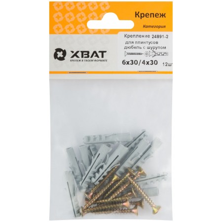 Крепление для плинтусов.Комплект: дюбель с шурупом 6х30/4х30 (фасовка 12 шт) (24891-2)