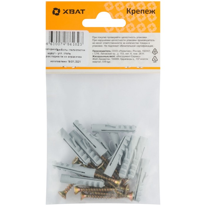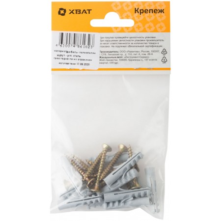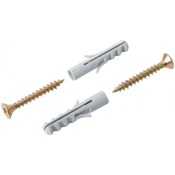 Дюбель изготовлен из полипропилена, шуруп - из стали. Используется для крепления плинтусов и других конструкций.