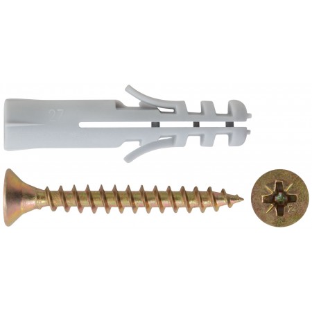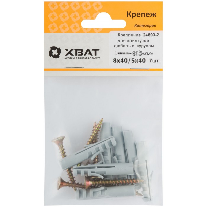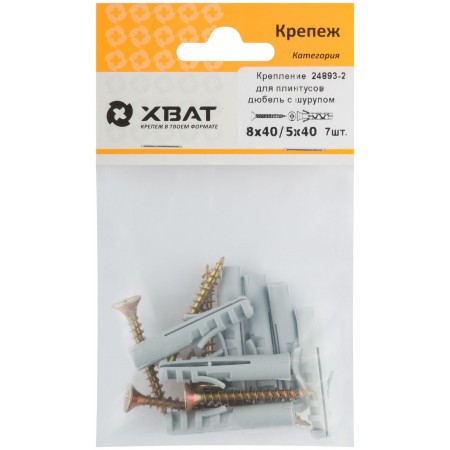 Крепление для плинтусов.Комплект: дюбель с шурупом 8х40/5х40 (фасовка 7 шт) (24893-2)