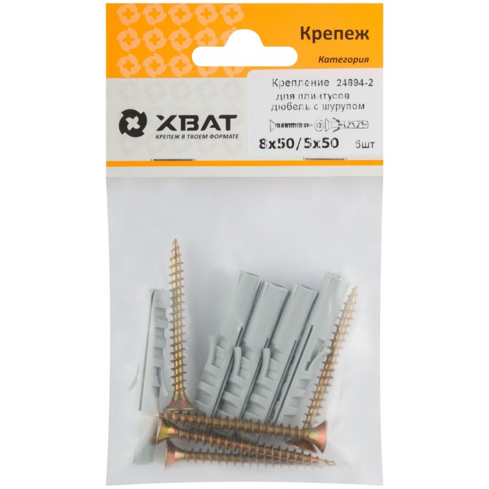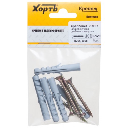 Крепление для плинтусов.Комплект: дюбель с шурупом 8х50/5х50 (фасовка 5 шт.) (24894-2)