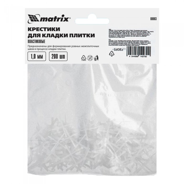 Крестики, 1.0 мм, для кладки плитки, 200 шт Matrix (88083)