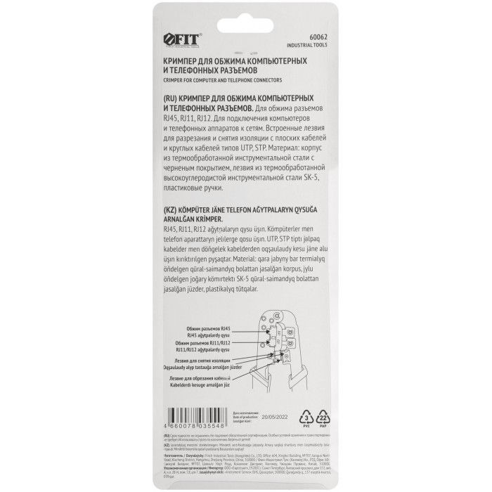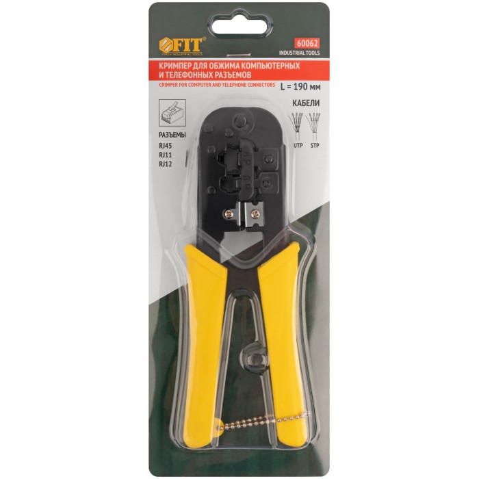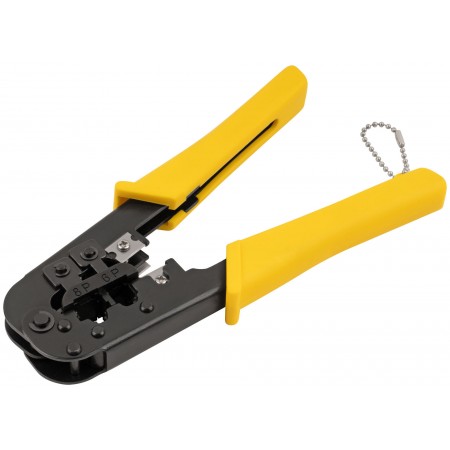 Для обжима разъемов RJ45, RJ11, RJ12. Для подключения компьютерных и телефонных аппаратов к сетям. Встроенные лезвия для разрезания и снятия изоляции с плоских кабелей и круглых кабелей типов UTP, STP. Материал: корпус из инструментальной стали с черненым покрытием, лезвия из высокоуглеродистой стали SK5, пластиковые ручки. Упаковка: блистер.