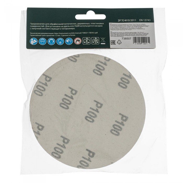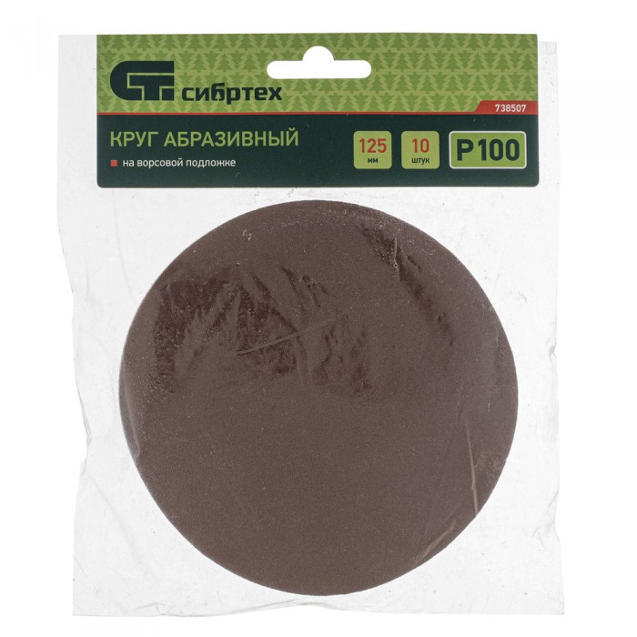 Круг абразивный на ворсовой подложке под "липучку", P 100, 125 мм, 10 шт Сибртех (738507)