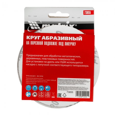 Круг абразивный на ворсовой подложке под "липучку", P 120, 125 мм, 10 шт Matrix (73855)