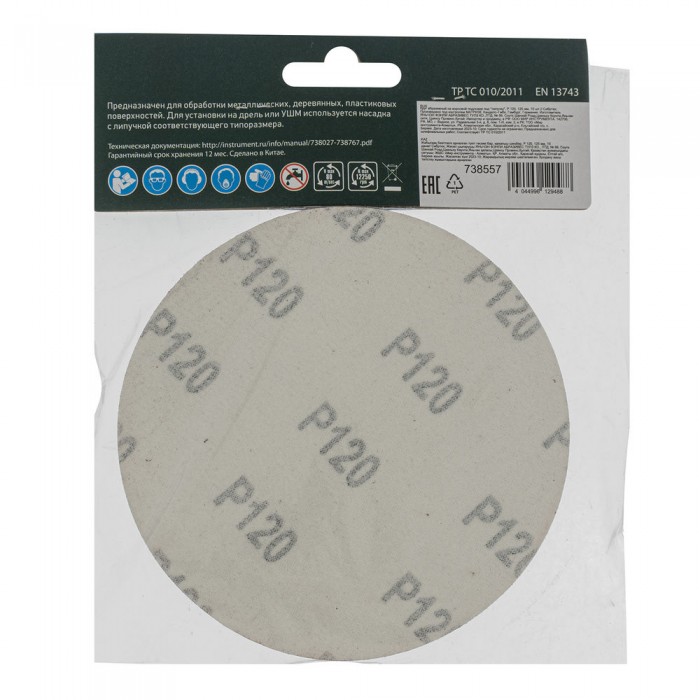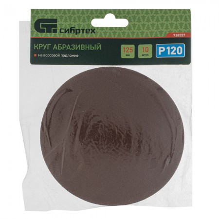 Круг абразивный на ворсовой подложке под "липучку", P 120, 125 мм, 10 шт Сибртех (738557)