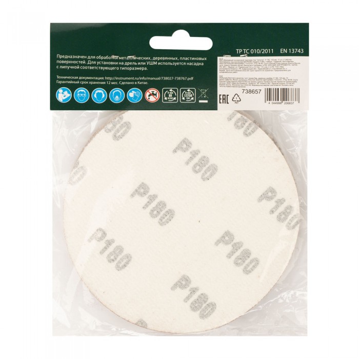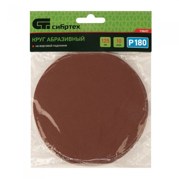 Круг абразивный на ворсовой подложке под "липучку", P 180, 125 мм, 10 шт Сибртех (738657)