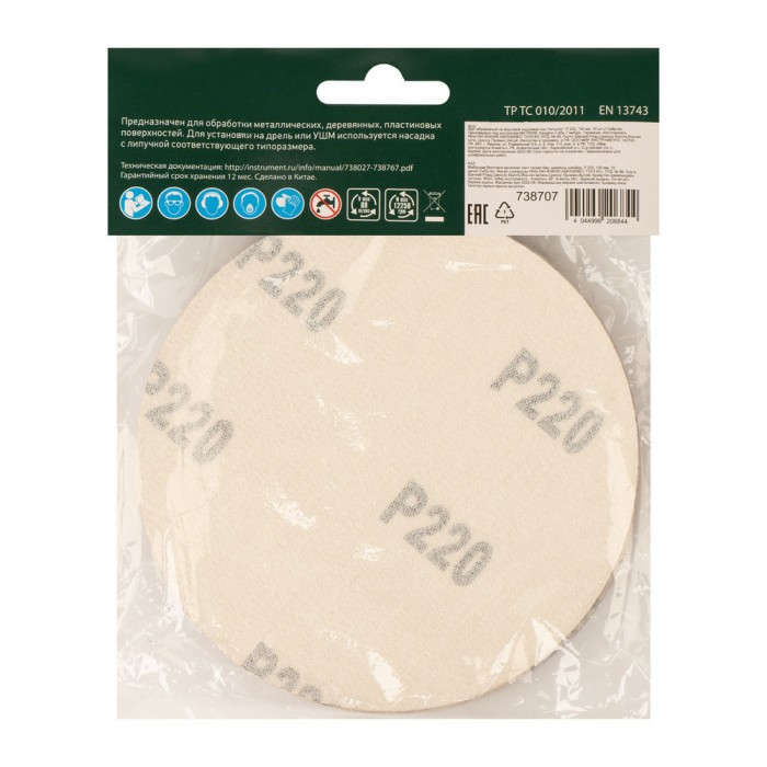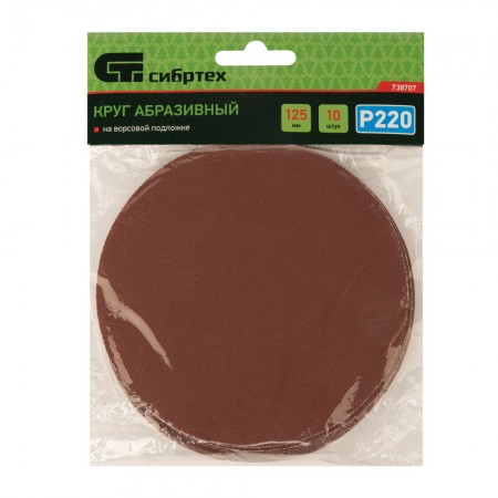 Круг абразивный на ворсовой подложке под "липучку", P 220, 125 мм, 10 шт Сибртех (738707)