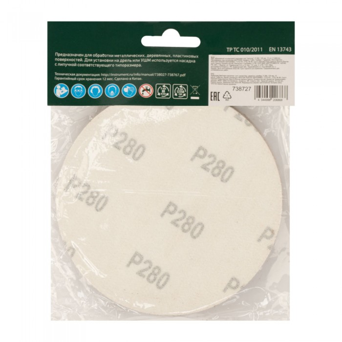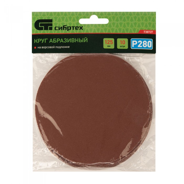 Круг абразивный на ворсовой подложке под "липучку", P 280, 125 мм, 10 шт Сибртех (738727)