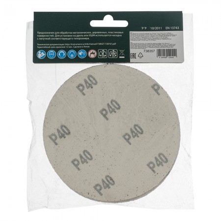 Круг абразивный на ворсовой подложке под "липучку", P 40, 125 мм, 10 шт Сибртех (738357)
