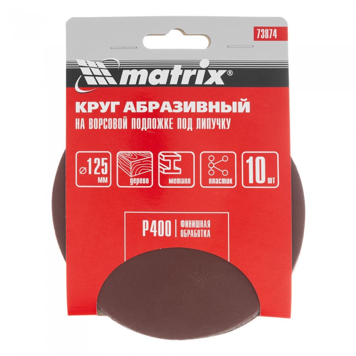 Круг абразивный на ворсовой подложке под "липучку", P 400, 125 мм, 10 шт Matrix (73874)