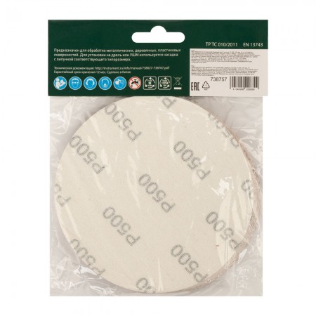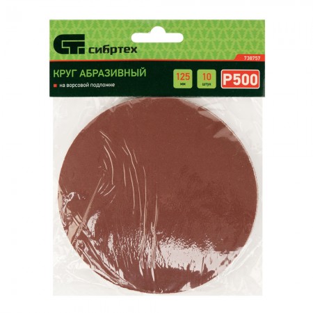 Круг абразивный на ворсовой подложке под "липучку", P 500, 125 мм, 10 шт Сибртех (738757)