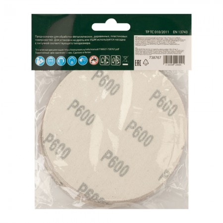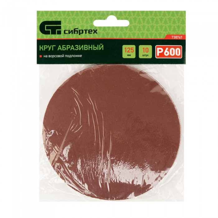 Круг абразивный на ворсовой подложке под "липучку", P 600, 125 мм, 10 шт Сибртех (738767)