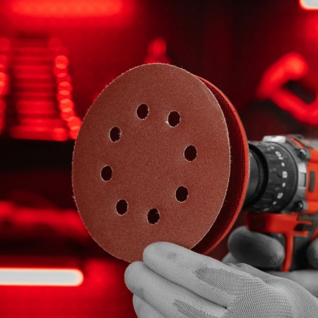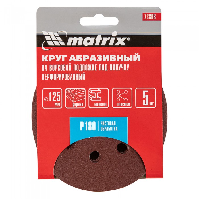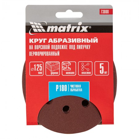 Круг абразивный на ворсовой подложке под "липучку", перфорированный, P 180, 125 мм, 5 шт Matrix (73808)