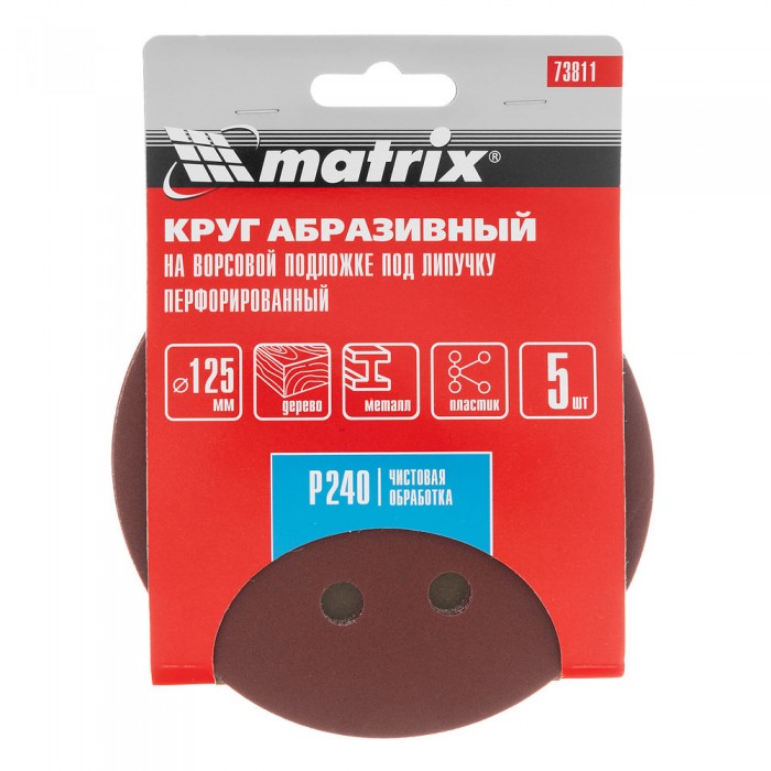 Круг абразивный на ворсовой подложке под "липучку", перфорированный, P 240, 125 мм, 5 шт Matrix (73811)