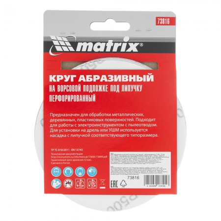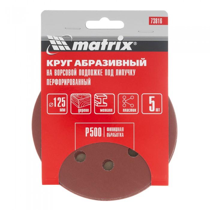Круг абразивный на ворсовой подложке под "липучку", перфорированный, P 500, 125 мм, 5 шт Matrix (73816)