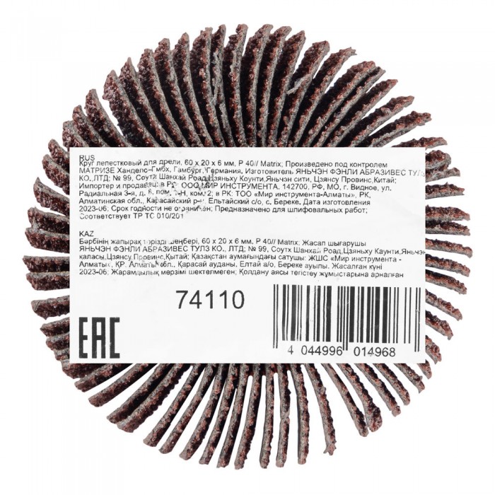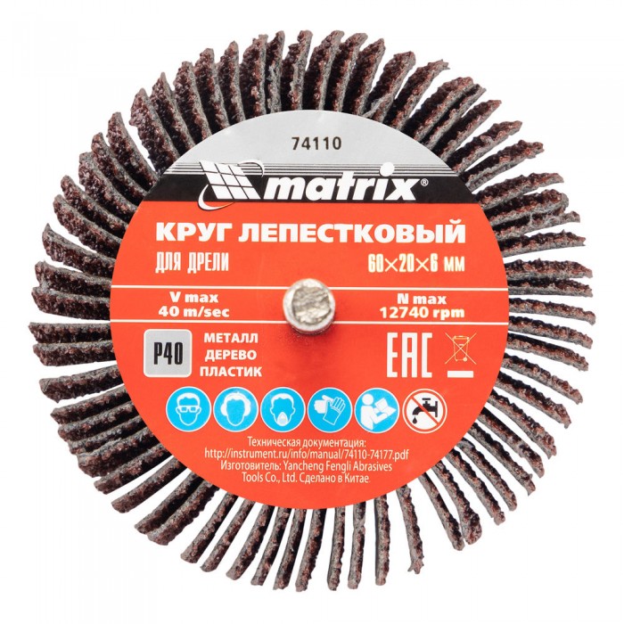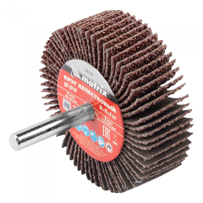 Круг лепестковый для дрели, 60 х 20 х 6 мм, P 40 Matrix (74110)