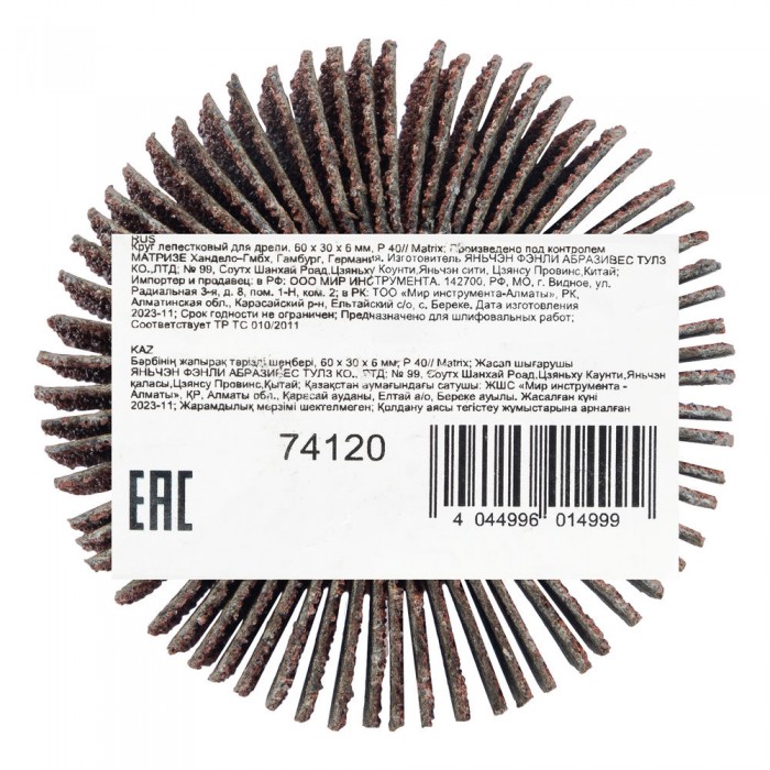 Круг лепестковый для дрели, 60 х 30 х 6 мм, P 40 Matrix (74120)