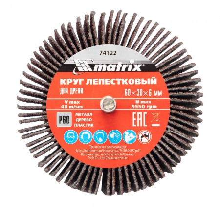 Круг лепестковый для дрели, 60 х 30 х 6 мм, P 60 Matrix (74122)