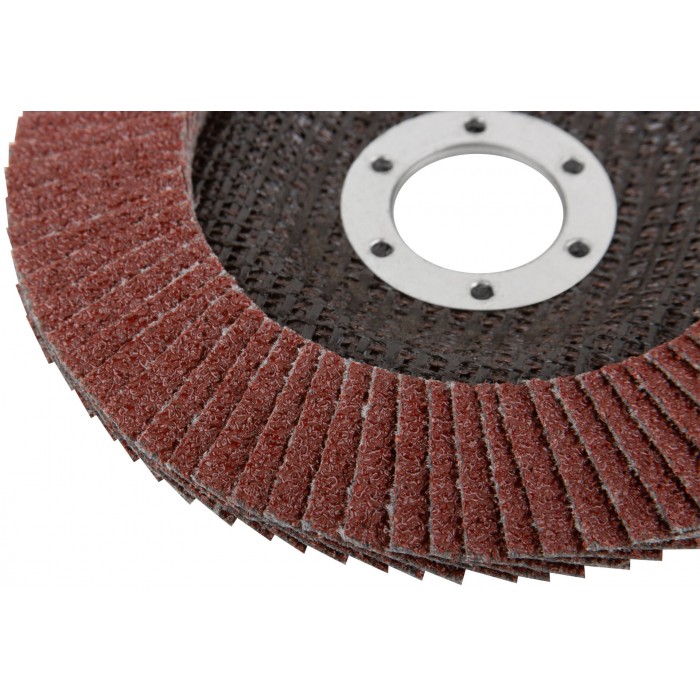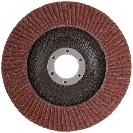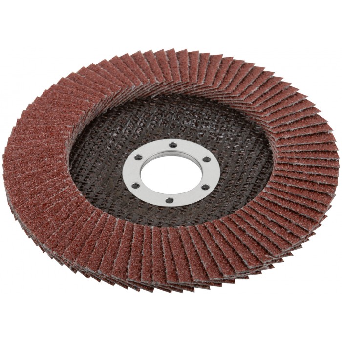 Тип 2 (Конический). Для обработки различных материалов. Используется с УШМ. 80 лепестков. Лепестки расположены под углом. Посадочный диаметр 22,2 мм. Материал: полимерная основа, образивный слой-оксид алюминия.