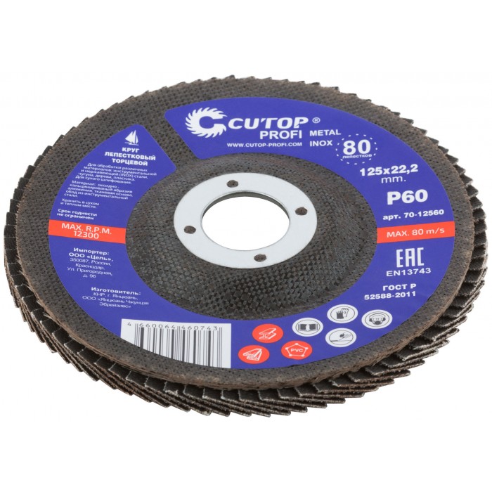 Круг лепестковый торцевой Cutop Profi (80 лепестков) 125 х 22,2 мм, Р60 (70-12560)